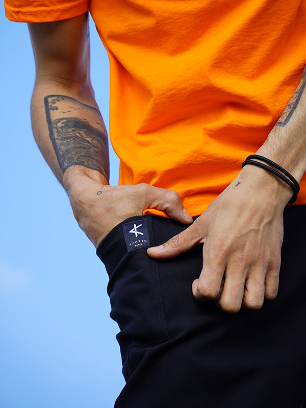 Straight Taitsu pants, slightly fitted at the ankle, thanks to an ergonomic closure with neodymium magnets. two side pockets, matching tightening belt.